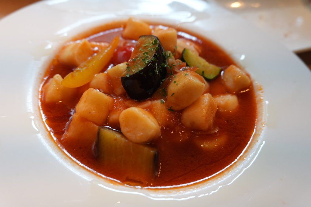 いつもは、ラクレットチーズが、かかっている料理を注文するけれど、今日はあえて野菜のトマトソースニョッキを注文。