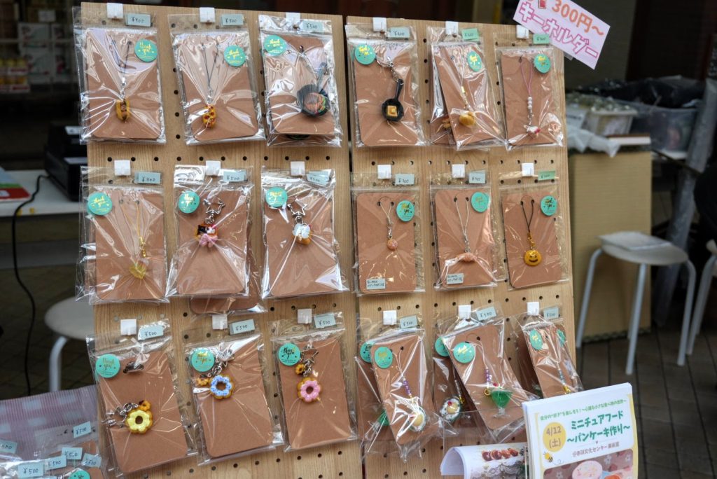 今回も、のん先生のハンドメイド作品は、道行く人々の目を引いていました。みなさん、じっくりみたり、立ち止まったり、戻ってきたりと興味深々でしたよ。