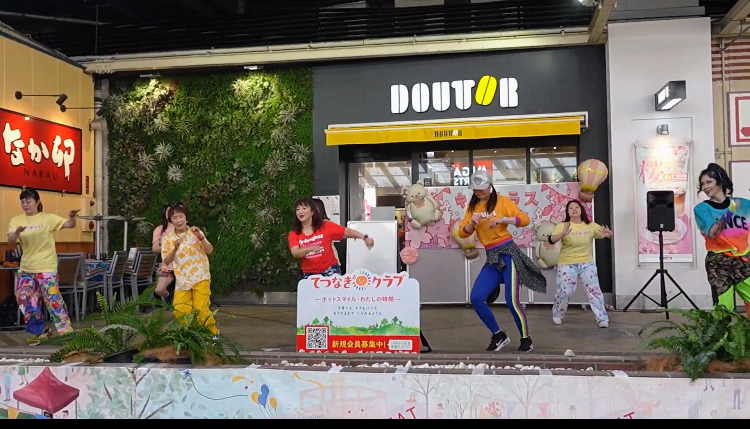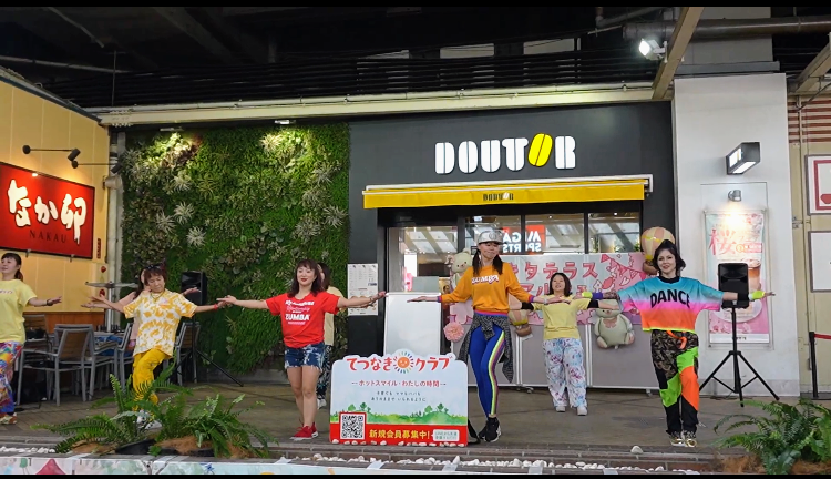 てつなぎクラブでは、約一年間ZUMBA®講座を開催してきました。その講師がMAYUMI先生です。一年間通ってくれたママさんもステージにて踊ってくれました。