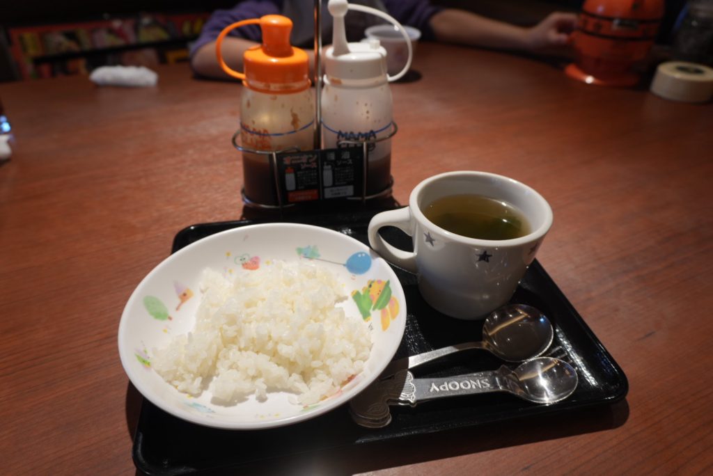 ↑自分で取ってくるライス・スープ・お子様カトラリー。お代わりし放題なのが嬉しい。