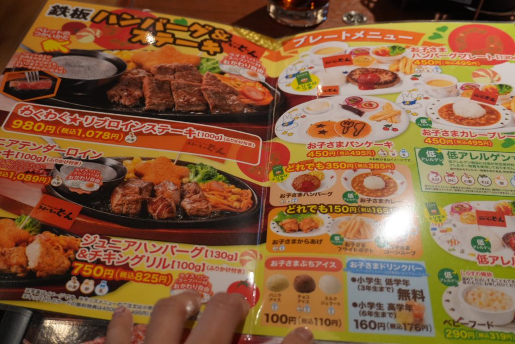 そして、嬉しいのがお子様ドリンクバー。最近のファミリーレストランは、4歳から料金を取るお店が多いのですが、ステーキのどんは、小学校低学年(3年生まで)まで無料です。とても良心的ですね。