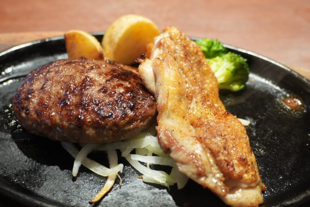 記者が頼んだメニュー:ハンバーグ・ハーフチキングリルランチ