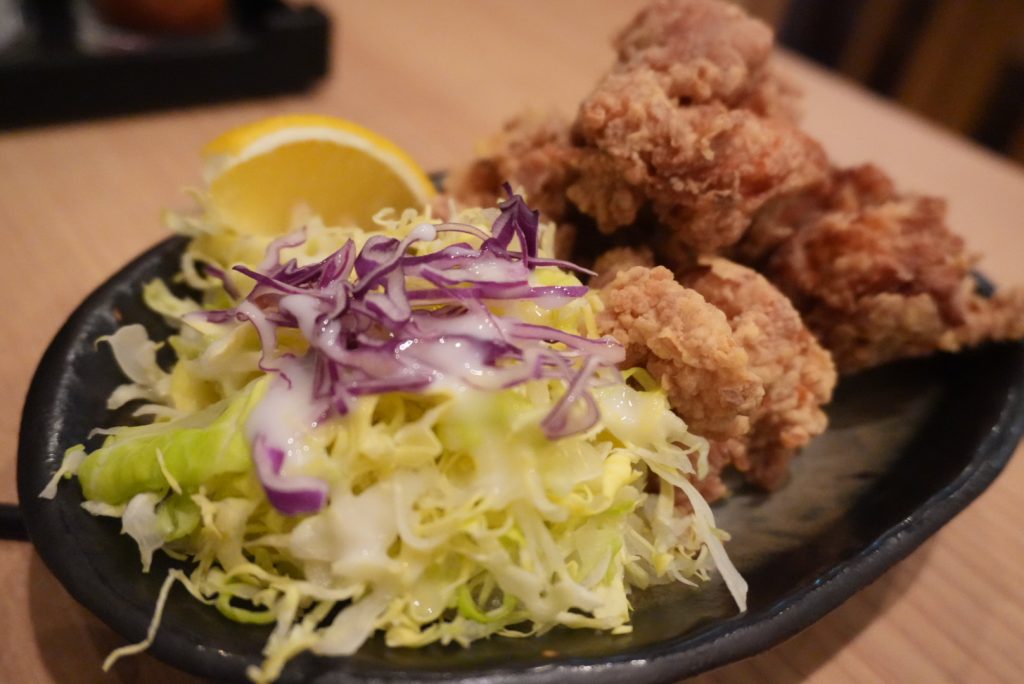 なんか、写真が残念、、、、。ピントが添え物のキャベツに合っちゃっている。唐揚げのサクサク感をお伝え出来ずに残念な写真。