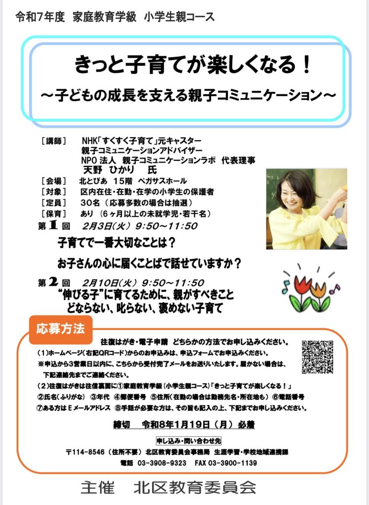 子育てに悩みがあるママ、パパさん!天野ひかり先生による子育て講演会が開催されますよ!